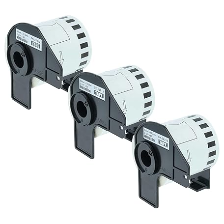 vhbw 3X Etiketten-Rolle mit Halter 62mm x 15,24m (1 Etikette) kompatibel mit Brother PT QL-710W, QL650TD, QL-700, QL-710 Etiketten-Drucker