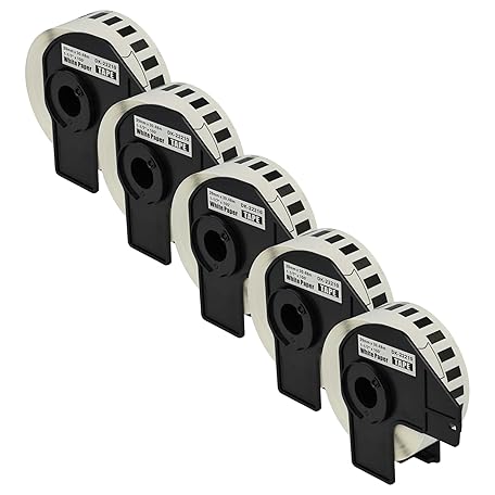 vhbw 5X Etiketten-Rolle mit Halter 29mm x 30,48m (1 Etikette) kompatibel mit Brother PT QL-710W, QL650TD, QL-700, QL-710 Etiketten-Drucker