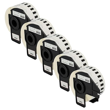vhbw 5x Etiketten-Rolle mit Halter 38mm x 30,48m (1 Etikette) kompatibel mit Brother PT QL650TD, QL-700, QL-710 Etiketten-Drucker Weiß