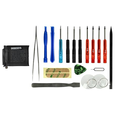 vhbw Akku kompatibel mit Apple Watch Serie 5 44mm, MWVF2LL/A Smartwatch Uhr Fitnessarmband (296mAh, 3,81V, Li-Polymer) + Werkzeug-Set