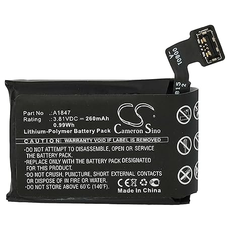 vhbw Battery Compatible with Apple Watch Series 3 GPS 38 mm Smartwatch Watch Fitness Bracelet (260 mAh, 3.81 V, Li-Polymer) + Tool Set