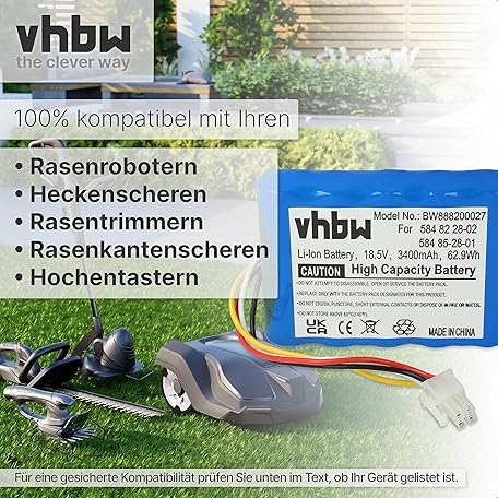Sản phẩm vhbw Battery Compatible with Husqvarna Automower 310, Husqvarna Automower 315 Robotic Lawnmower, Replacement Battery (3400 mAh, 18.5 V, Li-Ion) đang được bán với giá ưu đãi là $56.8762 tại nước Đức.