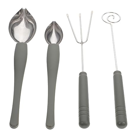 VICASKY 4 Stück Edelstahl Dekorationslöffel mit Schokoladen Gabeln und Sauce Malwerkzeugen Rostfrei Vielseitig für Kuchen Deko Dessert Verzierung Gebäck und Schokoladen Malen Komfortabler