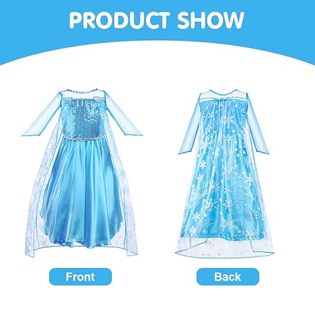 Thông tin sản phẩm Vicloon Elsa Dress, 3 Pieces Elsa Costume Girls with Tiaras & Wand, Girls Costume Christmas Halloween Fancy Dress Carnival Cosplay Birthday Party Dress (110)