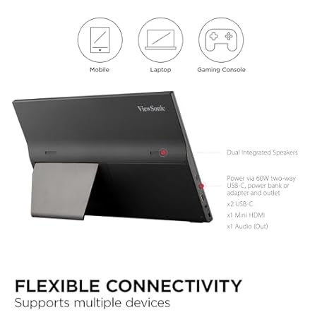 Thông tin sản phẩm Viewsonic VA1655 40 cm (15.6 Inch) Portable Monitor Full HD IPS Panel Mini HDMI 2x USB-C for Raspberry Pi/Xbox/PS4/PS5, Speaker, Black