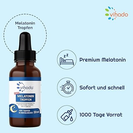 Sản phẩm Vihado Melatonin Drops - 1000 Days - Instant and Fast - Extra High Dose (Forte) - Better Das Melatonin Complex, 50 ml (1000 Drops) đang được bán với giá ưu đãi là $18.8243 tại nước Đức.