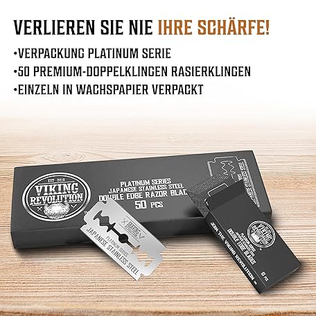 Sản phẩm Viking Revolution - Razor Blades - Pack of 100 - Men's Safety Razor Blades - Platinum Razor Blades - Japanese Stainless Steel đang được bán với giá ưu đãi là $11.3905 tại nước Đức.