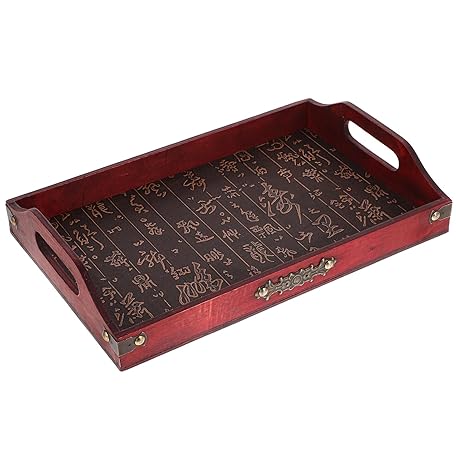 VILLCASE Rechteckiges Holztablett für Tee und Snacks Multifunktionale Servierplatte aus Hochwertigem Holz Chinesischer Stil für Restaurant Zuhause und Gästezimmer Dekoratives