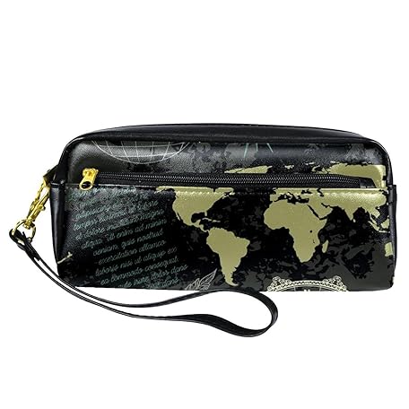 Vinatge Federmäppchen mit Weltkarten-Kompass, nautisches Reise-Federmäppchen, Stifteetui, Stifteetui, aus PU-Leder, mit Reißverschluss, für Jungen und Mädchen, Schul- und Bürobedarf