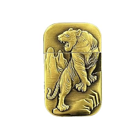 Vintage Brass Relief Pattern Refillable Kerosene Lighter Candle Lighter Gift (Tiger)