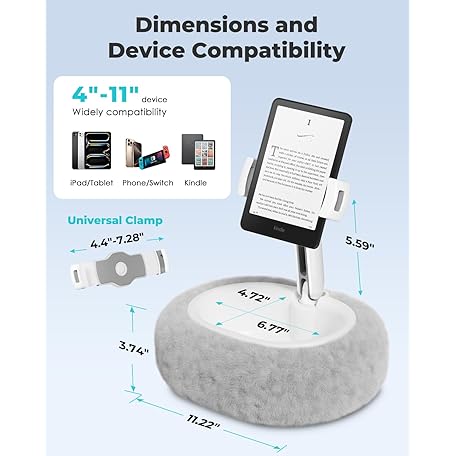 Thông tin sản phẩm viozon Tablet Cushion Stand, Kindle Holder, iPad Holder Bed, Foldable with Storage Tray Compatible with 3.5-7 Inch Kindle/Phone/Tablet - Ideal for Reading and Watching Video in Bed, Grey
