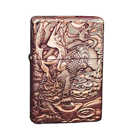 VIPAVA Handgeschnitztes Kerosin-Feuerzeug aus Messing, Winddichte, weiche Flamme, Klappkappe aus Metall, Vintage-Schleifrad, wiederverwendbar, als Geschenk for die Herrenkollektion(Red Copper)
