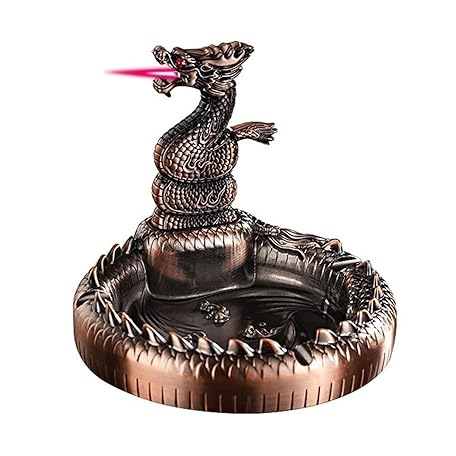 VIPAVA Multifunktionales Metallfeuerzeug mit Aschenbecher-Kombination, Winddichte Jetflamme, Butan nachfüllbar, Vintage-Relieffeuerzeug, geeignet for Kerzen, Camping-Männergeschenk(Bronze)