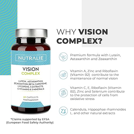 Sản phẩm Vision Complex Lutein + Zeaxanthin + Astaxanthin - Vitamins C E and A - Complex 18 Ingredients with Zinc Selenium Copper Lycopene + Thiamine Riboflavin - 60 Capsules Nutralie đang được bán với giá ưu đãi là $35.4468 tại nước Đức.