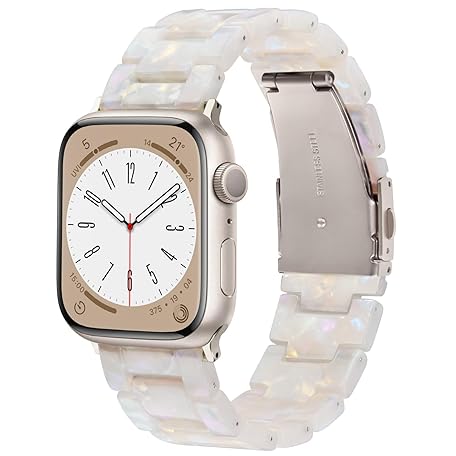 Thông tin sản phẩm VISOOM Harz Armband kompatibel mit Apple Watch Armband Series 11/10/9/8/7/SE 41mm 40mm 38mm 42mm Damen Herren, Leichte Band für Apple Watch Series 6/5/4/3/2/1- Aurora Weiß(Starlight)