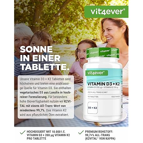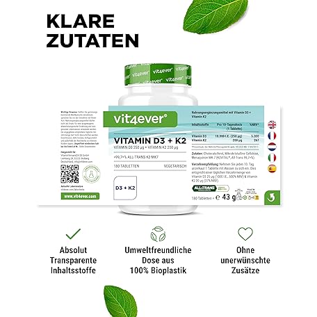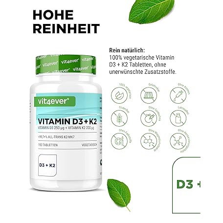 Sản phẩm Vit4ever® Vitamin D3 10,000 IU + Vitamin K2 200 mcg Menaquinone MK7 Depot 180 Tablets 100% All-Trans (K2VITAL® by Kappa) Laboratory Tested Vegetarian High Dose Premium Quality đang được bán với giá ưu đãi là $23.8928 tại nước Đức.