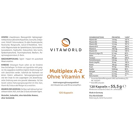 Sản phẩm Vita World Multivitamin A-Z without Vitamin K Iodine-Free 3 x 120 Capsules Vegan Pharmacist Production Pack of 3 đang được bán với giá ưu đãi là $49.8239 tại nước Đức.