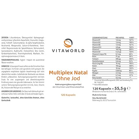 Sản phẩm Vita World Multivitamin Natal No Iodine 3 x 120 Capsules Vegan Pharmacist Production Pack of 3 đang được bán với giá ưu đãi là $49.9656 tại nước Đức.