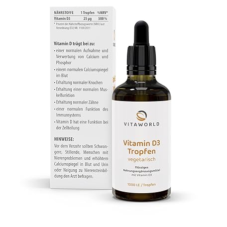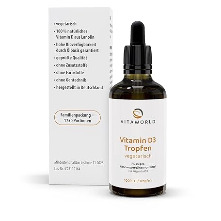 Sản phẩm Vita World Vitamin D3 Drops 1,000 IU 3 x 50 ml Lanolin Vegetarian German Pharmacist Production Pack of 3 đang được bán với giá ưu đãi là $56.7127 tại nước Đức.