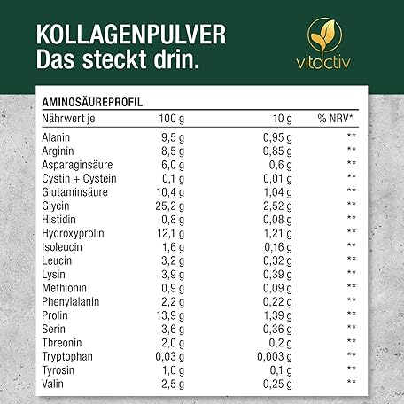Thông tin sản phẩm VITACTIV Collagen Powder 300 g - Collagen Hydrolysate, Type 1 & 3 Peptides - 19 Essential Amino Acids - High Bioavailability, No Additives, Neutral in Taste - Laboratory Tested in Germany