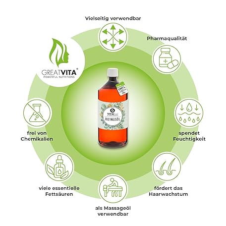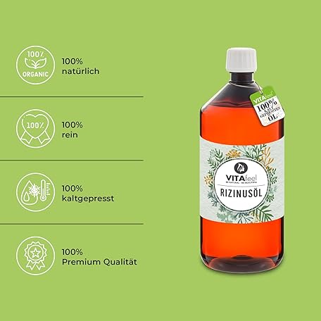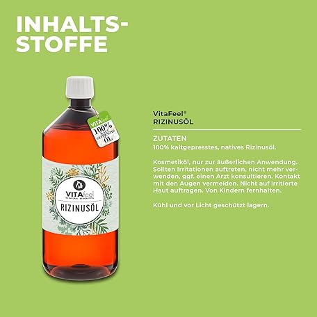 Sản phẩm VitaFeel Castor Oil - 100% Pure Cold-Pressed Oil, Native Ph. Eur., 2 x 1000 ml, Eyelash Serum, Hair Oil, Natural Hair Care - Print May Vary đang được bán với giá ưu đãi là $24.0345 tại nước Đức.