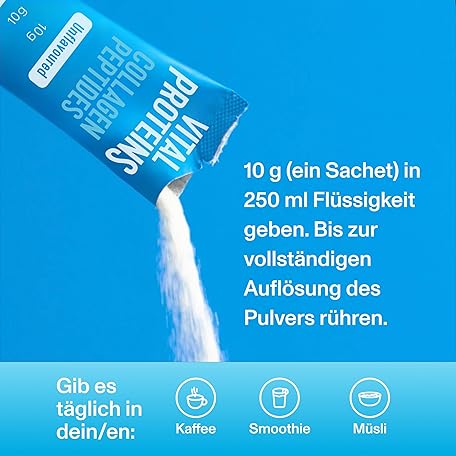 Sản phẩm Vital Proteins Collagen Peptides 10 Sachets x 10 g - Pure Collagen Peptides - Beautiful Skin, Hair & Nails - Tasteless - Optimally Soluble - Hydrolysed Collagen Type 1 & 3 đang được bán với giá ưu đãi là $20.3394 tại nước Đức.