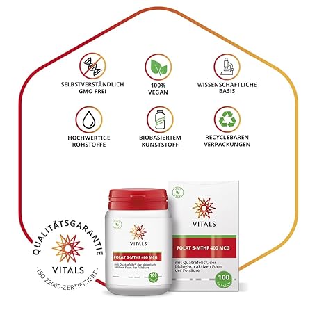 Sản phẩm Vitals Folate 5-MTHF - 400mcg Folic Acid with Quatrefolic, 100 Capsules. For Pregnancy, Vegan. đang được bán với giá ưu đãi là $25.2117 tại nước Đức.