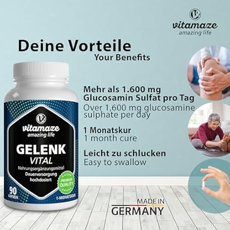 Sản phẩm Vitamaze Capsules High Dose with Glucosamine + Chondroitin + Hyaluronic Acid + MSM, 90 Capsules as 1 Month Cure, Natural Dietary Supplement without Additives, Made in Germany đang được bán với giá ưu đãi là $19.2712 tại nước Đức.