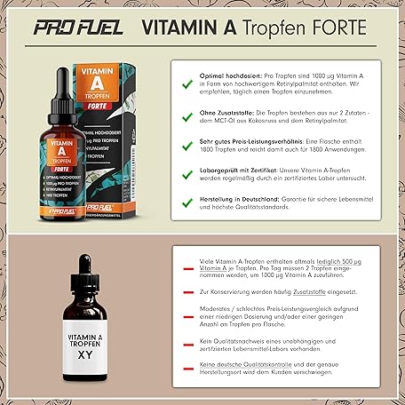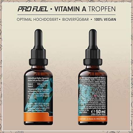 Thương hiệu ProFuel là cái tên nổi tiếng được rất nhiều khách hàng trên thế giới chọn lựa. Với kiểu dáng đẹp mắt, sang trọng, sản phẩm Vitamin A Drops Forte – 1000 µg per Drop – 1800 Drop. With Vitamin A from Retinyl Palmitate – Optimal High Dose & Bioavailable – Laboratory Tested with Certificate – 100% Vegan  là sự lựa chọn hoàn hảo nếu bạn đang tìm mua một món  cho riêng mình.