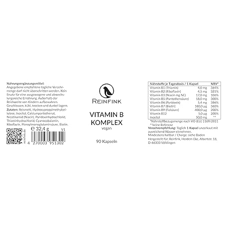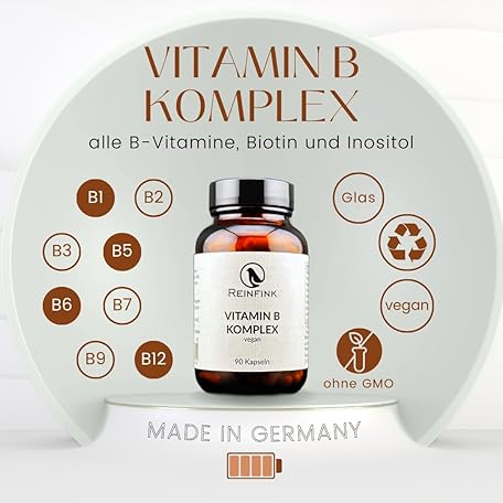 Sản phẩm Vitamin B Complex Vegan 90 Capsules in Glass 1 Capsule per Day Contains All 8 B Vitamins Reinfink® đang được bán với giá ưu đãi là $15.8922 tại nước Đức.