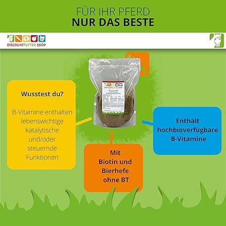 Thương hiệu discountfutter.shop là cái tên nổi tiếng được rất nhiều khách hàng trên thế giới chọn lựa. Với kiểu dáng đẹp mắt, sang trọng, sản phẩm Vitamin B Kit for Horses, 1 kg (Pellet), Rich in Vitamin B, Biotin, Horse Food for Harmonious Digestion, Strong Immune System, Vitamin B Deficiency là sự lựa chọn hoàn hảo nếu bạn đang tìm mua một món cho riêng mình.