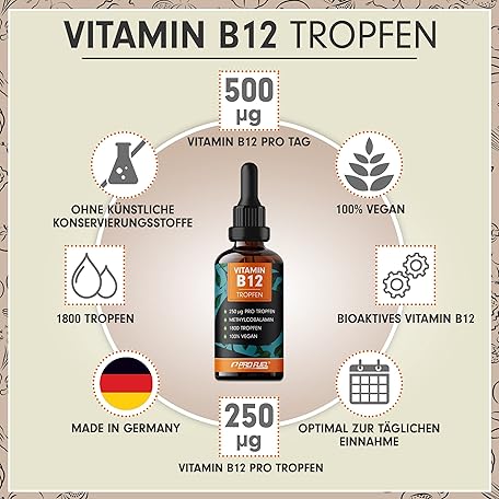 Sản phẩm Vitamin B12 Drops - 1800 Drops (50 ml) - Bioactive Methylcobalamin B12 - Optimal High Dose with 500 mcg B12 - No Preservatives or Alcohol - 100% Vegan đang được bán với giá ưu đãi là $12.6549 tại nước Đức.