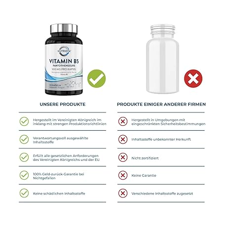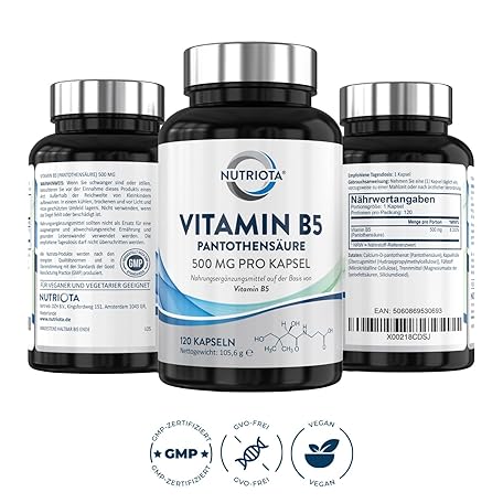 Sản phẩm Vitamin B5 Pantothenic Acid High Dose 500 mg Capsules - 120 Capsules - Vegan Friendly - From Nutriota đang được bán với giá ưu đãi là $31.4138 tại nước Đức.