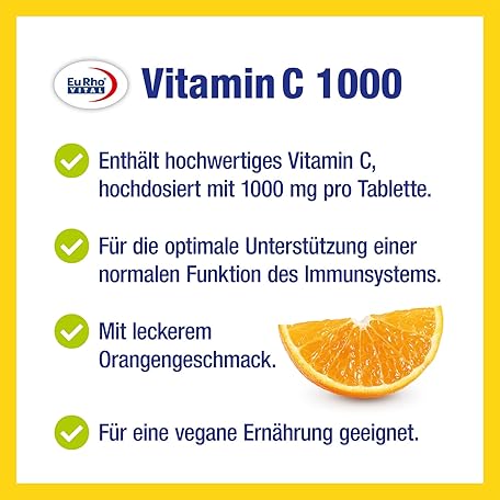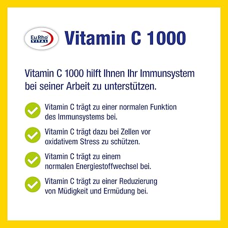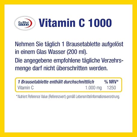 Sản phẩm Vitamin C 1000 Effervescent Tablets High Dose Dietary Supplement for Optimal Support of the Immune System EuRho® Vital - Made in Germany (Pack of 12 (240 Tablets)) đang được bán với giá ưu đãi là $18.4101 tại nước Đức.