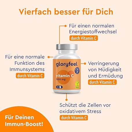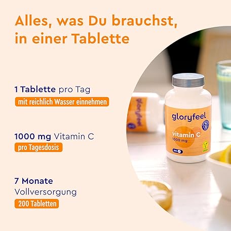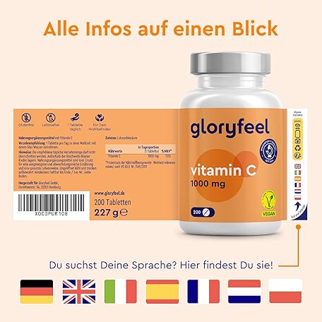 Sản phẩm Vitamin C 1000 mg high dose – Competitor 2019 – 200 Vegan Tablets – Up to 7 Months of Full Supply – Laboratory-tested and without unwanted additives from GloryFeel đang được bán với giá ưu đãi là $25.3534 tại nước Đức.