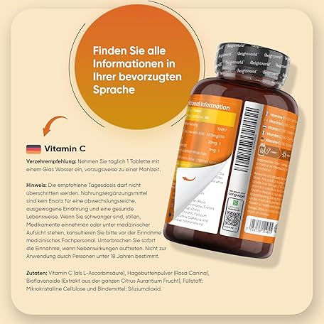 Sản phẩm Vitamin C 1000 mg per tablet - 180 vegan tablets for 6 months - Vit C as L-ascorbic acid with bioflavonoids and rose hip - WeightWorld đang được bán với giá ưu đãi là $12.644 tại nước Đức.
