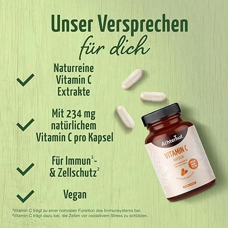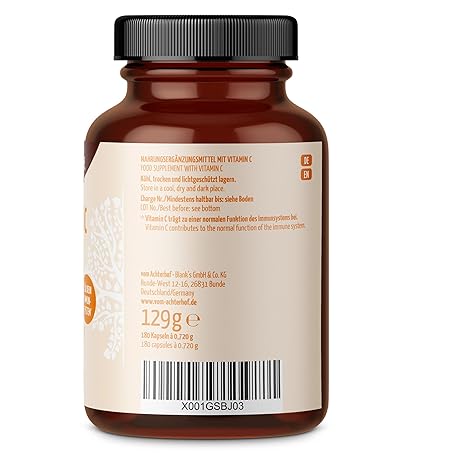 Sản phẩm Vitamin C 180 Kapseln | natürliches Vitamin C aus Acerola-Hagebutte & Camu Camu Extrakten | hochdosiert 234 mg natürliches Vitamin-C | 100% Vegan | frei von unerwünschten Zusatzstoffen | vom Achterhof đang được bán với giá ưu đãi là $26.3998 tại nước Đức.
