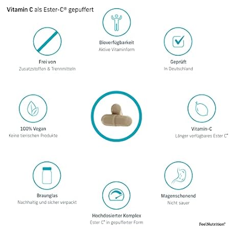 Thương hiệu FeelNutrition là cái tên nổi tiếng được rất nhiều khách hàng trên thế giới chọn lựa. Với kiểu dáng đẹp mắt, sang trọng, sản phẩm Vitamin C Ester-C buffered – in glass, without plasma maker – per capsule 395 mg elementary vitamin C – without magnesium stearate – vegan and high dosage – 110 capsules – German premium quality. là sự lựa chọn hoàn hảo nếu bạn đang tìm mua một món cho riêng mình.