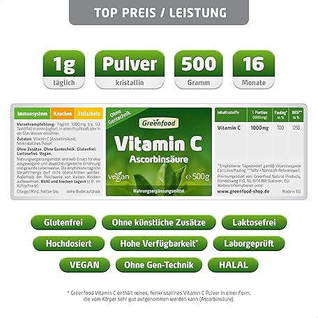 Thương hiệu Greenfood là cái tên nổi tiếng được rất nhiều khách hàng trên thế giới chọn lựa. Với kiểu dáng đẹp mắt, sang trọng, sản phẩm Vitamin C Powder, 250 g – For Strong Immune System, Healthy Teeth and Gums, Strong Connective Tissue Guaranteed without genetic engineering! No artificial additives. Vegan. 500.0 là sự lựa chọn hoàn hảo nếu bạn đang tìm mua một món cho riêng mình.