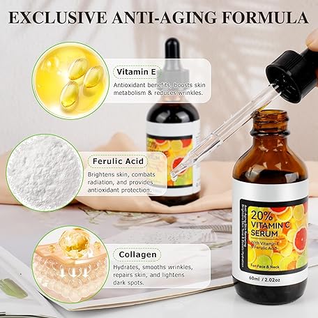 Sản phẩm Vitamin C Serum Face 60 ml - 20% Vitamin C Serum High Dose with Vitamin E & Hyaluronic Acid | Anti-Ageing & Skin Renewal | Skin Whitening & Moisturising Serum Vitamin C for Face | Fragrance-Free đang được bán với giá ưu đãi là $11.6303 tại nước Đức.