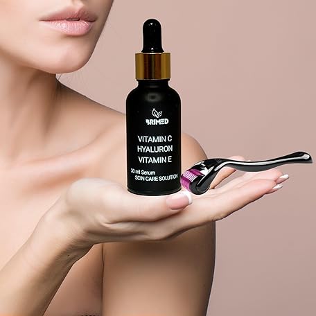 Vitamin C Serum + Hyaluronic + Vitamin E and Derma Roller for Microneedling (0.50 mm)