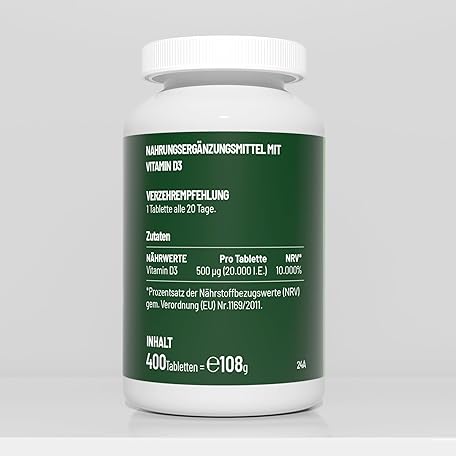 Sản phẩm Vitamin D3 20000 I.E. Hochdosiert – 400 Tabletten im Jahresvorrat, Sonnenvitamin für Immunsystem, Vegetarisch, In Deutschland Produziert đang được bán với giá ưu đãi là $17.0694 tại nước Đức.
