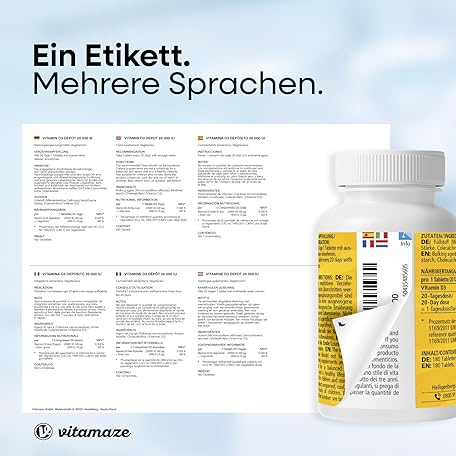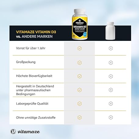Thương hiệu Vitamaze - amazing life là cái tên nổi tiếng được rất nhiều khách hàng trên thế giới chọn lựa. Với kiểu dáng đẹp mắt, sang trọng, sản phẩm Vitamin D3 hochdosiert 20000 IE pro Tablette (20-Tage Dosis), 180 vegetarische Tabletten (teilbar), Natürliche Nahrungsergänzung ohne Zusatzstoffe, Made in Germany là sự lựa chọn hoàn hảo nếu bạn đang tìm mua một món cho riêng mình.