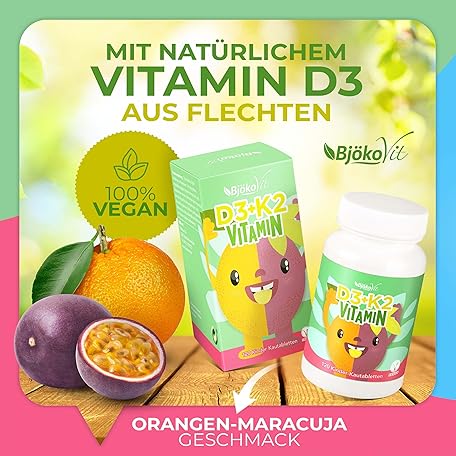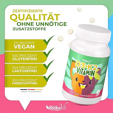 Thương hiệu BjökoVit là cái tên nổi tiếng được rất nhiều khách hàng trên thế giới chọn lựa. Với kiểu dáng đẹp mắt, sang trọng, sản phẩm Vitamin D3 K2 Children's Chewable Tablets for 120 Days - 100% Vegan and Sugar Free - 400 IU Vitamin D from Lichens & 22.5 µg Vitamin K for Children - Vitamin D Children Vitamins Children là sự lựa chọn hoàn hảo nếu bạn đang tìm mua một món cho riêng mình.