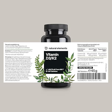 Thương hiệu natural elements là cái tên nổi tiếng được rất nhiều khách hàng trên thế giới chọn lựa. Với kiểu dáng đẹp mắt, sang trọng, sản phẩm Vitamin D3 + K2 Depot, 180 Tablets, Premium Quality: K2VITAL® by Kappa, 99.7+%, All-Trans K2-MK7 + 5000 IU Vitamin D3, High Dose, No Additives, Produced in Germany & Laboratory Tested là sự lựa chọn hoàn hảo nếu bạn đang tìm mua một món cho riêng mình.