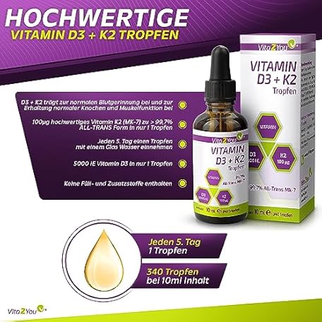 Thương hiệu Vita2You là cái tên nổi tiếng được rất nhiều khách hàng trên thế giới chọn lựa. Với kiểu dáng đẹp mắt, sang trọng, sản phẩm Vitamin D3 + K2 Drop – 20ml – Vitamin D3 1000 IU Vitamin K2 20ΜG with Natural Menaq Uinon MK-7 – 99% of all Trans High Organic Availability With Mct Oil – Premium Quality – Made in Germany là sự lựa chọn hoàn hảo nếu bạn đang tìm mua một món cho riêng mình.