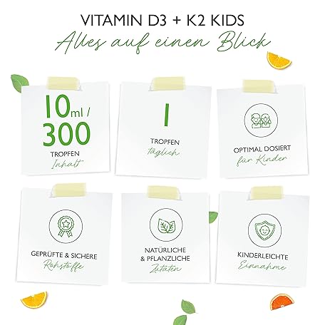 Sản phẩm Vitamin D3 K2 Drops for Children for 300 Days (10 Months) - 500 IU Vitamin D & 25μg Vitamin K2 - Highly Bioavailable by Original K2VITAL® - No Harmful Additives - Vitamins for Kids đang được bán với giá ưu đãi là $12.9492 tại nước Đức.