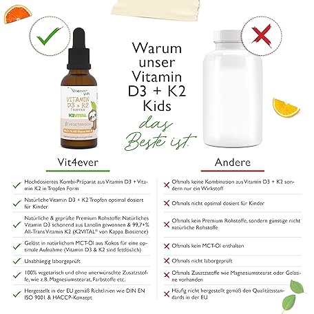 Thương hiệu Vit4ever là cái tên nổi tiếng được rất nhiều khách hàng trên thế giới chọn lựa. Với kiểu dáng đẹp mắt, sang trọng, sản phẩm Vitamin D3 K2 Drops for Children for 300 Days (10 Months) - 500 IU Vitamin D & 25μg Vitamin K2 - Highly Bioavailable by Original K2VITAL® - No Harmful Additives - Vitamins for Kids là sự lựa chọn hoàn hảo nếu bạn đang tìm mua một món cho riêng mình.