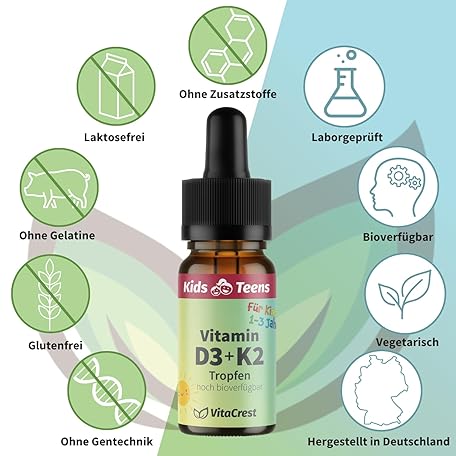 Thương hiệu VitaCrest là cái tên nổi tiếng được rất nhiều khách hàng trên thế giới chọn lựa. Với kiểu dáng đẹp mắt, sang trọng, sản phẩm Vitamin D3 K2 Drops for Toddlers from 1 Year - German Product - Free from Additives & 100% Vegetarian - Vitamin D for Children Vitamins là sự lựa chọn hoàn hảo nếu bạn đang tìm mua một món cho riêng mình.