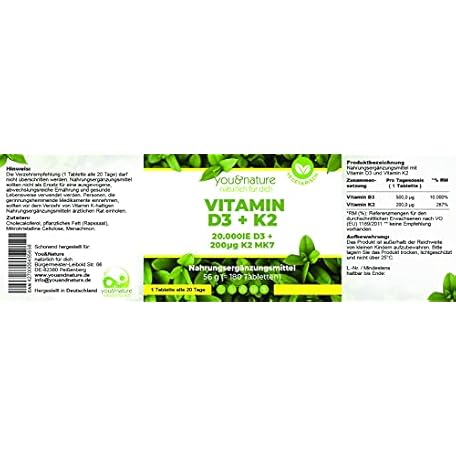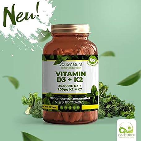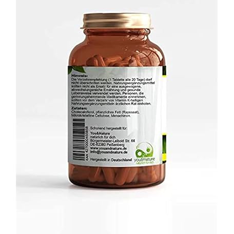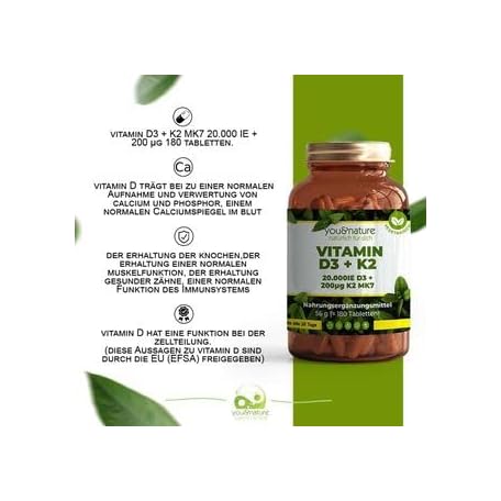 Thương hiệu you&nature natürlich für dich là cái tên nổi tiếng được rất nhiều khách hàng trên thế giới chọn lựa. Với kiểu dáng đẹp mắt, sang trọng, sản phẩm Vitamin D3 + K2 MK7 20,000 IU + 200 μg 180 Tablets là sự lựa chọn hoàn hảo nếu bạn đang tìm mua một món cho riêng mình.